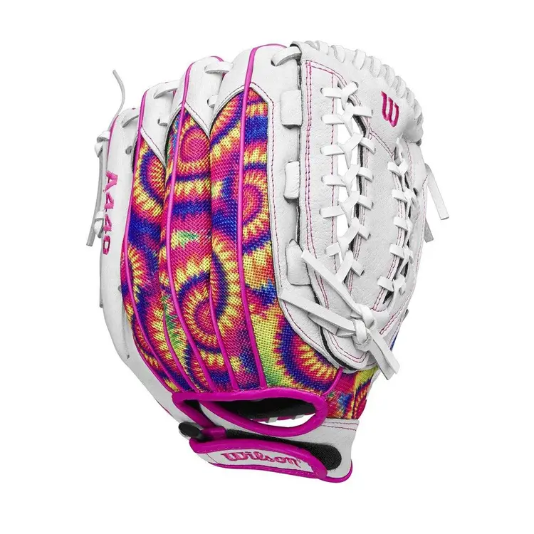 Wilson Sports Equipment24 A440 FLASH FPG 12" WHT/PNK/RNBW(0) C$69.99 Excl. tax In stock Add to cartPay directFree shipping From C$50.00Shipped today? You got 00 : 00 : 00DescriptionShareThe White and multi-colored Tie-Dye design with a Closed Laced Web is lightweight and soft for a game-ready feel. An adjustable Velcro Wrist Strap ensures a secure fit. Facebook Tweet Whatsapp